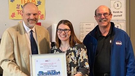 The US Small Business Administration has celebrated America’s small businesses through this celebration for more than 50 years. In conjunction with that, the Small Business Development Center at Onondaga Community College is taking the time to recognize outstanding small businesses from each of the six counties served by the agency. Each business has at some time leveraged the no-cost assistance provided by the team of business advisors to start or grow their small businesses. These businesses will be recognized with a presentation at their location, as their county’s “Small Business of the Year” as recognized by the advisors of the Onondaga SBDC. As a result of the many great businesses to celebrate in our region, the team also selected a “Small Agricultural Business of the Year”. In addition, the Regional Director has selected a “Lender Partner of the Year”, recognizing the tremendous contributions made by that lender to assisting small businesses throughout the Central New York territory. SBDC at Onondaga Community College Small Business Week Award winners include: Cortland County Small Business of the Year: Seven Valley Specialty Cables L/R: Sherwin Nepomucena, President, Seven Valley Specialty Cables LLC - Bob Griffin, Regional Director - Paul Brooks, Certified Small Business Advisor Cortland County Small Business of the Year: Seven Valley Specialty Cables owned by Sherwin Nepomucena, located in Cortland, NY. Cortland Companies existed in Cortland since 1981. Acquired by Actuant (part of Enerpac Tool Group) in 2008 the company continued to make custom-engineered electro-mechanical cables and umbilicals, high performance synthetic ropes and value-added steel cable and assemblies until the parent company announced a closing of the Cortland plant and eventually closed in 2020. The plant had employed over 40 people among them was engineer Sherwin Nepomucena. Sherwin set about doing something to save some of those jobs. He assembled financing to purchase some of the remaining machinery from the closed plant and purchase additional equipment. He utilized his contacts from years at Cortland Companies to begin to line up business. He focused on experienced engineering talent, quality and reliability to service the specialty cable market. They moved the operation into the former Smith Corona facility on Route 13 in Cortland and in 2020 registered the company as an LLC in the State of New York. Today they are producing cable for commercial, industrial and government customers. SBDC assisted this client development of financial projections and underlying assumptions. Also arranged a meeting with a turn-around expert who provided great insight to the acquisition situation. Assisted client to produce business plan for bank financing. Cayuga County Small Business of the Year: Paws 'n Purrs Pet Care L/R: Bob Griffin, Regional Director - Bonnie Ford, Owner, Paws ‘n Purrs - Nancy Ansteth, Certified Small Business Advisor Cayuga County Small Business of the Year: Paws 'n Purrs Pet Care, owned by Bonnie Ford located in Auburn, NY. Bonnie Ford has had an incredible journey with Paws n' Purrs. The process of acquiring the business and property required jumping over several hurdles. From non-cooperative sellers to delayed financing, Bonnie had to seriously question what she was getting into early on. Persistence and resourcefulness kept her eyes on the goal. Today, she finds herself turning away customers due to space and time constrictions. Bonnie sets a standard for entrepreneurs that is truly inspirational, she has pursued her passion and continues to do so. Agricultural Small Business of the Year: Galvin Farms Gourmet Mushroom Company L/R: Bob Griffin, Regional Director - Jack Galvin Owner, Galvin Farm - Frank Cetera, Advanced Certified Business Advisor Agricultural Small Business of the Year: Galvin Farms Gourmet Mushroom Company, owned by Jack & Patricia Galvin, located in Phoenix, NY. Galvin Farm and Gourmet Mushroom LLC located in Lysander, NY is owned operated by Patricia and Jack Galvin since 1995. They produce a variety of fresh Oyster mushrooms and Grow Max Natural CO2 Bags for indoor gardens and farms. Onondaga SBDC, and Senior Business Advisor Frank Cetera, worked with Galvin’s to help them navigate the COVID pandemic resources available to them. This included reviewing EIDL guidelines and communicating with client about potential restructuring of language on the EIDL as a result of the PPP law; as well as responding to client’s questions regarding calculation of FTEs for PPP, and status of co-owner “owners draw” pay in calculation. The resulting awards of a PPP loan through Pursuit of $29,000 and a $96,300 SBA EIDL loan provided the capital Galvin’s needed to continue operations and save 7 jobs at the time. Seneca County Small Business of the Year: Waterloo Chiropractic, PLLC L/R: Bob Griffin, Regional Director - Frank Joseph Catalano Jr Owner, Waterloo Chiropractic, PLLC Seneca County Small Business of the Year: Waterloo Chiropractic, PLLC owned by Frank Joseph Catalano Jr, located in Waterloo, NY. Waterloo Chiropractic PLLC is a locally owned and operated Chiropractic office that provides exceptional Chiropractic care in the Historic Village of Waterloo, NY. Dr. Frank Catalano, Chiropractor and owner, is committed to ensuring that any person seeking care is given the attention they need to help them identify and overcome their musculoskeletal issues. Dr. Catalano welcomes new patients to the office to experience Chiropractic care at Wateroo Chiropractic PLLC which aims to restore body mechanics, increase functionality and to decrease pain. Onondaga County Small Business of the Year: Luminary Electrical Contractor, LLC L/R: Shawni Davis Owner, Luminary Electrical Contractor, LLC - Frank Cetera, Advanced Certified Business Advisor Onondaga County Small Business of the Year: Luminary Electrical Contractor, LLC owned by Shawni Davis, located in Syracuse, NY. There