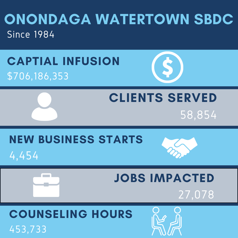 Supporting small business is a team sport, and we are grateful to have a network of exceptional partners committed to fostering a positive environment for entrepreneurs. I want to express my sincere gratitude to Onondaga Community College, Jefferson Community College, and SUNY Oswego for their unwavering support of the SBDC program over the past 40 years. This program would not be possible without these institutions, who understand the value the SBDC brings to our entrepreneurial ecosystem. I also want to thank our county, regional, and state economic development partners, many of whom serve on our Advisory Board, for their continued collaboration and guidance.