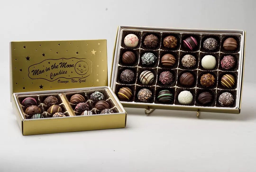 Everything was initially produced in her father’s basement, an approved commercial kitchen where he had previously made chocolate. In 2007, they opened a retail shop in the Canal Commons in Oswego, NY while still producing chocolate in her father’s basement.